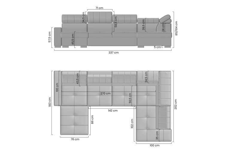 Powierzchnia spania: 270 x 126 cm